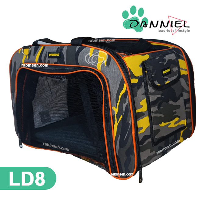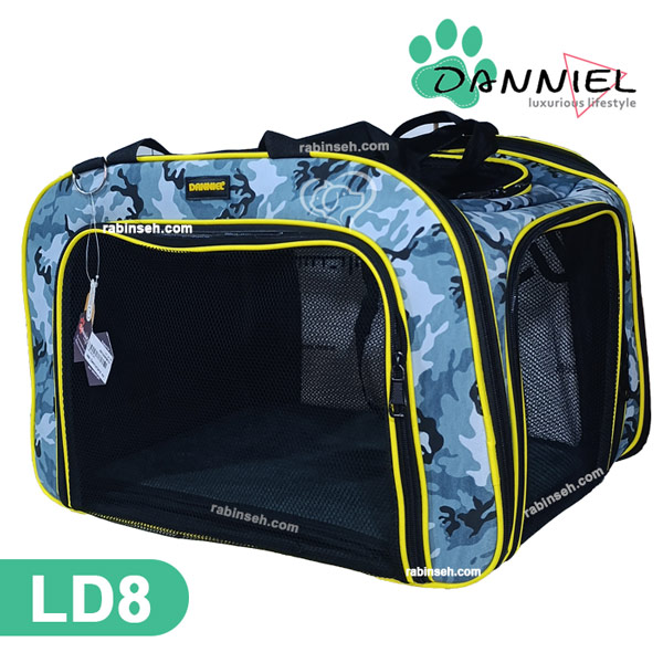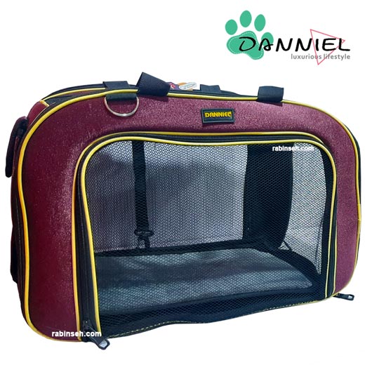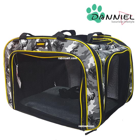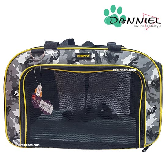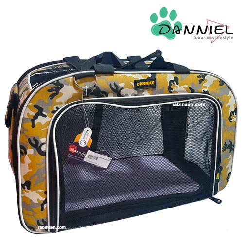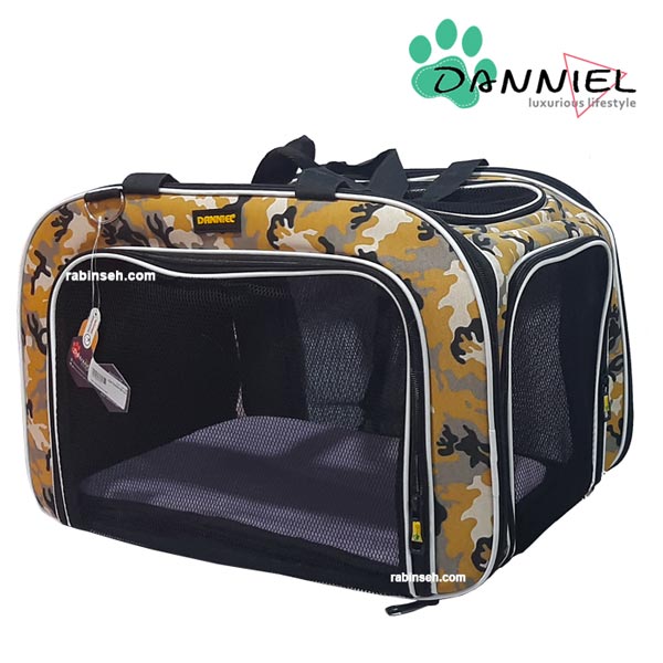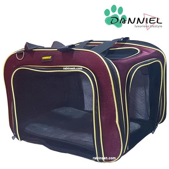 در چهار جهت آن درب های بزرگ توری و پارچه ای ضد حساسیت وجود دارد. کیف دنیل به همراه بند رو دوشی قابل تنظیم و بندگیر قلاده داخل کیف عرضه می شود.