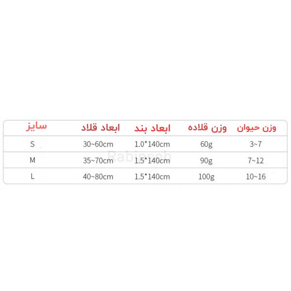 راهنمای انتخاب سایز بر اساس وزن حیوان: