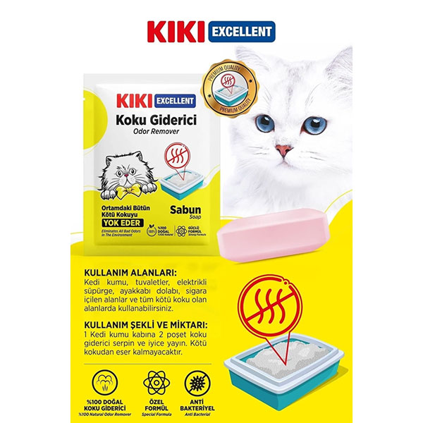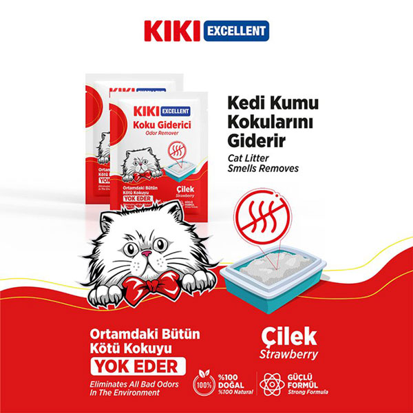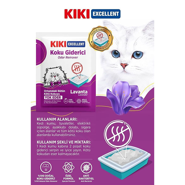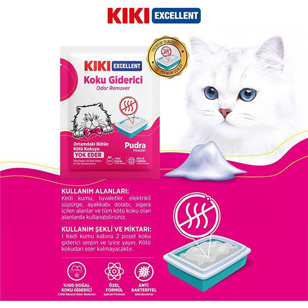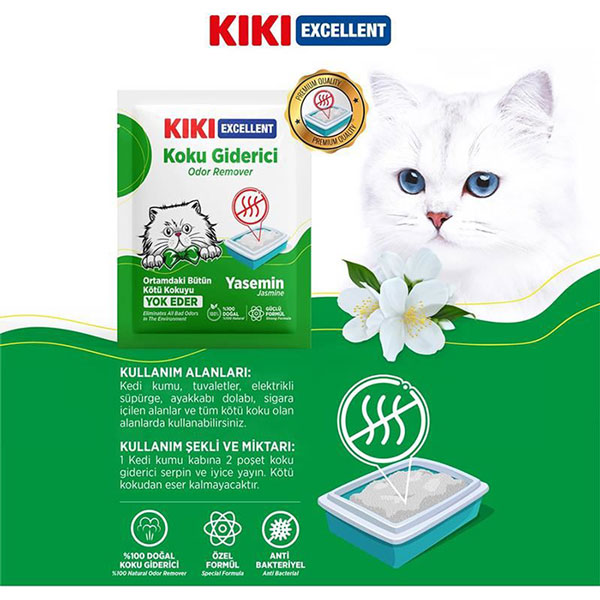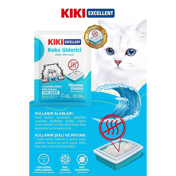 خوشبوکننده خاک گربه کی کی محصولی است که برای از بین بردن بوی بد ادرار و مدفوع گربه ها در جعبه خاک طراحی شده است.