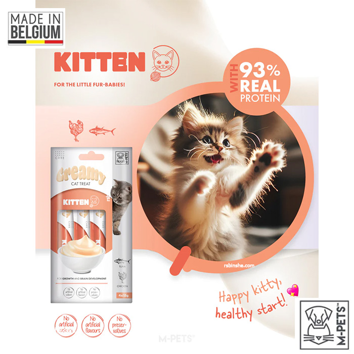 • بافت نرم و کرمی که خوردن آن برای توله‌گربه‌های ۲ ماهه به بالا بسیار آسان است.