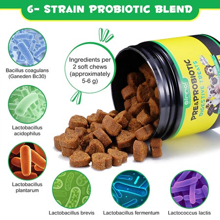 کاهش مشکلات گوارشی: یکی از رایجترین مشکلات گوارشی در سگها، اسهال است. پروبیوتیکها با تنظیم فلور روده سگ، به کاهش بروز اسهال و سایر مشکلات گوارشی مانند یبوست و نفخ کمک میکنند. همچنین، این تشویقیها برای سگهایی که به دلیل مصرف آنتیبیوتیکها دچار اختلال در فلور رودهای شدهاند، بسیار مفید هستند.