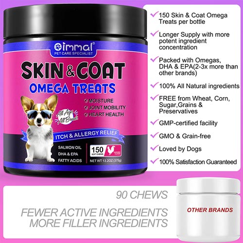 این تشویقی خوشمزه و مغذی، حاوی ترکیباتی مانند ویتامین E، C، D3، A، بیوتین و روی است که به تقویت فولیکولهای مو، کاهش التهاب پوست و بهبود گردش خون کمک میکنند. با اویمال، سگی شاداب و پر انرژی خواهید داشت.