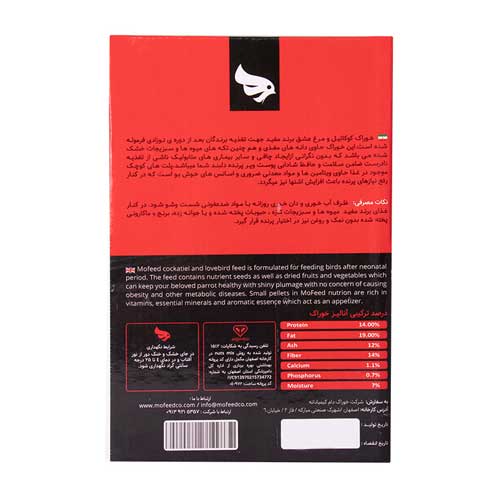 اندازه دانهها و همچنین تعادل فرمول غذا براساس نیازهای تخصصی خانواده پاراکیتها مانند مرغ عشق، عروس هلندی و … میباشد.
