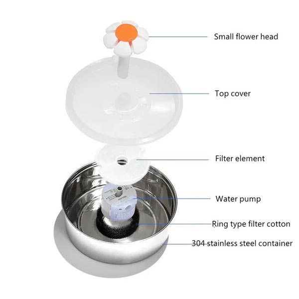 • کم صدا: پمپ این آبنما بسیار کم صدا است و حیوانات خانگی شما را اذیت نمی کند.