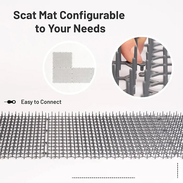 اجاق گاز یا بخاری اشیایی هستند که گاها گربه متوجه خطر آن ها نمیشود و ممکن است با نزدیک شدن به آن ها به خود آسیب وارد کند، یا وسایلی را تصور کنید که گرانبها هستند یا برای شما از ارزش معنوی برخوردار هستند، مثلا گلدان یادگاری یک رفیق قدیمی؛ مت اسپایک در قطعه های 15×20 سانتیمتری عرضه میشود، دارای میله هایی با نوک کاملا صاف و بیخطر است که گربه از راه رفتن روی آن ها لذتی نمیبرد و از آن دوری میکند. شما میتوانید با قرار دادن مت اسپایک در مسیر اجاق گاز یا دور تا دور بخاری یا اطراف وسایل ارزشمندتان از برخورد گربه آن ها جلوگیری کنید.